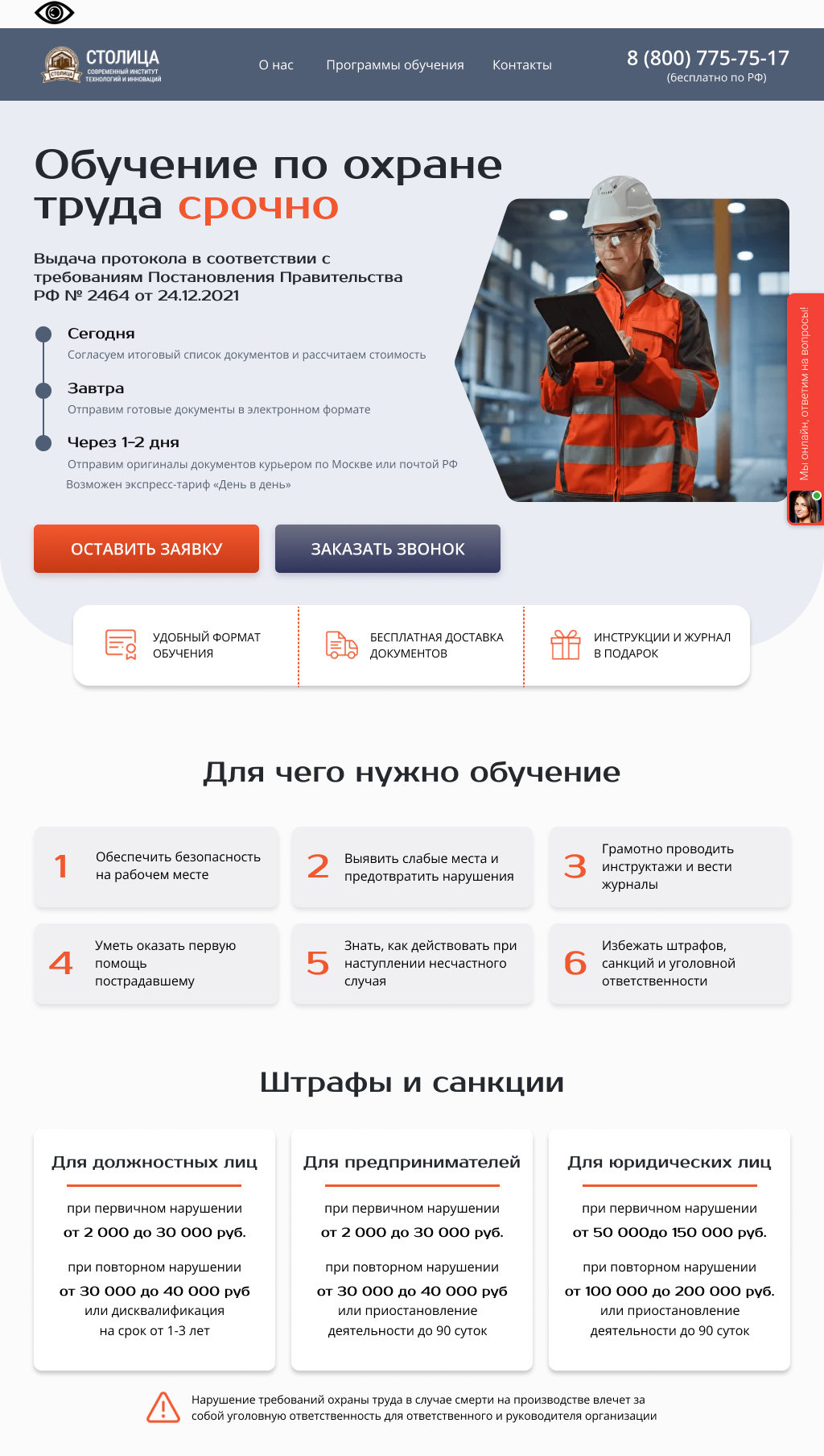 Сделать одностраничный сайт для приема заявок на курс по охране труда. Разработать контент и структуру, сделать дизайн и подключить системы аналитики, установить счетчик. Необходимы интеграции с Amo CRM, Envy Box. Сайт должен быть готов к запуску рекламной компании через Яндекс.