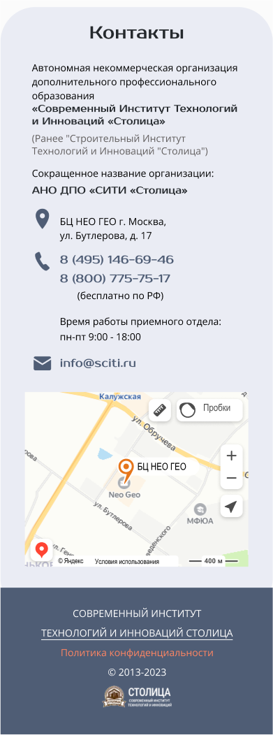 В футере размещена ссылка на политику конфиденциальности и сохранен фирменный цвет, он отлично подходил сущетсвующему дизайну.